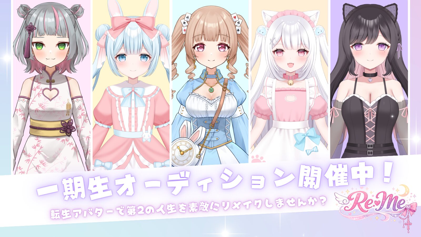 合格者特典 スケジュール 合格 応募要項 応募条件 合格者特典 スケジュール 合格 応募要項 応募条件 MESSAGE 配信の世界には、たくさんの可能性があります。でも同時に、「不安がある」「身バレが怖い」「自分にできるのか分からない」そんな理由で一歩を踏み出せない方も多くいます。私たちは、そんな方にこそ安心して配信活動を続けられる環境を提供したいと考えています。アバターという新しい形で、あなたの個性や魅力を多くの人に届けてみませんか?あなたの挑戦を、私たちは全力でサポートします。 あなたの“もう一つの人生”をここから ご応募はこちらから 合格者特典 ①弊社の保有する転生アバターの貸与 ②ゲーミングPCモニター/マイクオーディオインターフェイスの貸与 ③会社工場でのグッズの制作/発送 ④専属マネージャー制度企画イベントサポート スケジュール 1.応募受付開始 2.一次審査 (書類審査) 3.二次審査(オンライングループオーディション) 4.三次審査 (オンライン個別オーディション) 5.四次審査(オンライン個別オーディション) 合格 *研修期間が3週間程ございますの合格の後ご案内させて頂きます。*合格者特典として様々な特典をご用意しております。*合格通知は早くて5営業日程度でご連絡させて頂きます。 あなたの“もう一つの人生”をここから ご応募はこちらから -応募要項- 応募完了後は2-3営業日以内に運営からご連絡させていただきます。当日はリラックスしてご参加ください 当てはまる項目が多い方はご応募下さい ・転生アバターで第2の人生を素敵にリメイクしてくれる人・トークに自信がある・向上心が強く自身の成長を楽しめる・様々なジャンルの物事に興味関心が持てる・SNSの更新が得意である・人とは違った個性がある -応募条件- 当てはまる項目が多い方はご応募下さい ・専属契約が可能な方・楽しく元気にストリーミング配信可能な方・満20歳以上で正社員経験のある女性・SNSで積極的に活動が可能な方・継続的な配信活動が可能な方